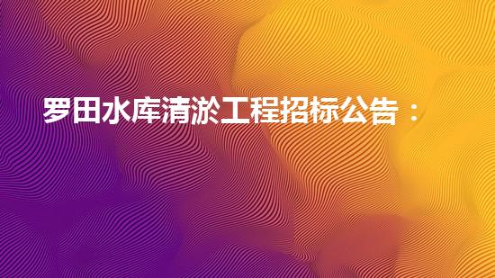 罗田水库清淤工程招标公告:水库困境,清淤助力,招标启幕!