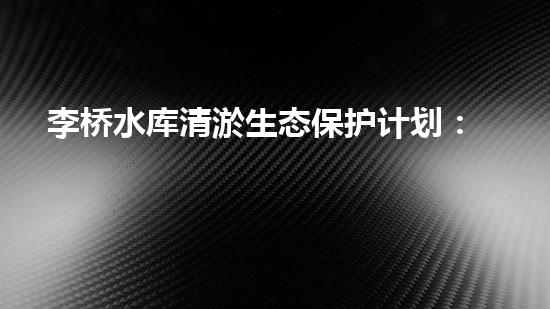 李桥水库清淤生态保护计划:挖掘出的泥沙将用于城市环境建设