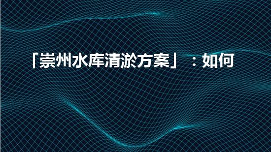 「崇州水库清淤方案」:如何打造智能、高效、环保的水库清淤模式?
