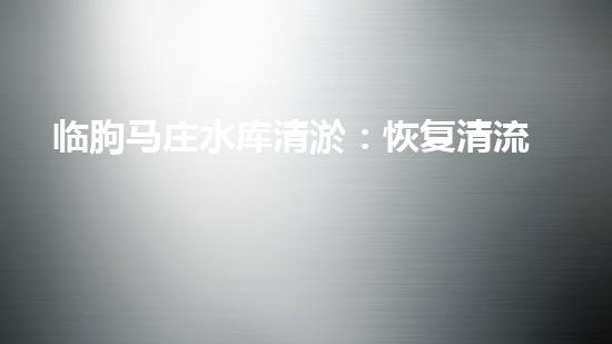 临朐马庄水库清淤:恢复清流,保护水源!
