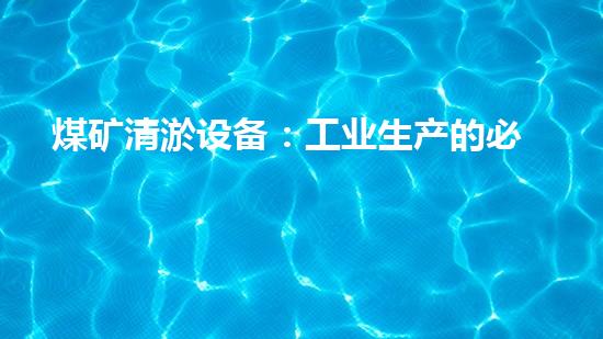 煤矿清淤设备:工业生产的必备管理工具