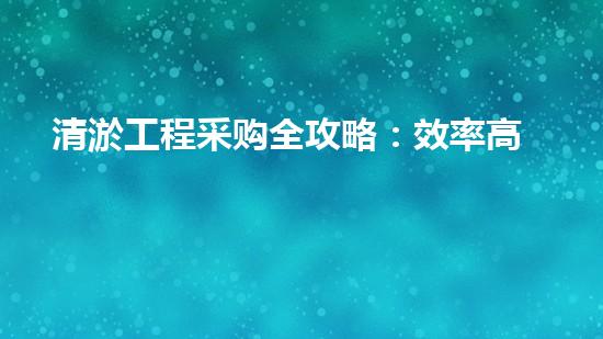 我们将为您系统刨析清淤工程的核心要点,从前期准备到合同治理,助您规避,实现效率高、合规、高性价比的采购目标。