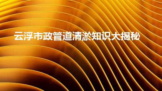 云浮市政管道清淤知识大揭秘:行业专家详解!