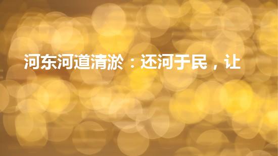 河东河道清淤:还河于民,让生命之源更清澈闪亮!