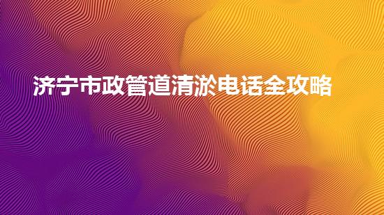 济宁市政管道清淤电话全攻略!