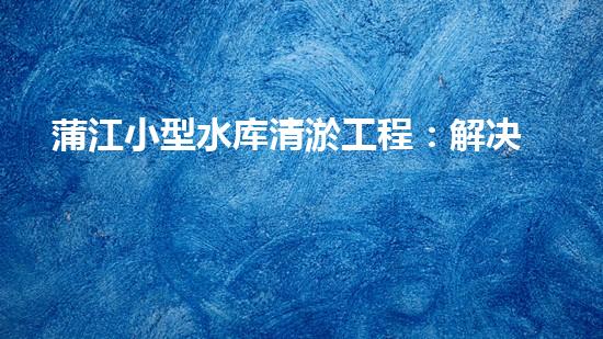 蒲江小型水库清淤工程:解决水库填淤难题