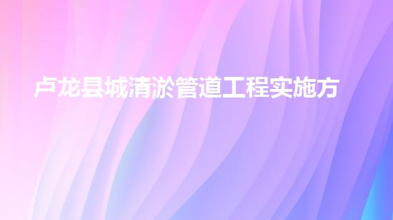 卢龙县城清淤管道工程实施方案分析与优化建议