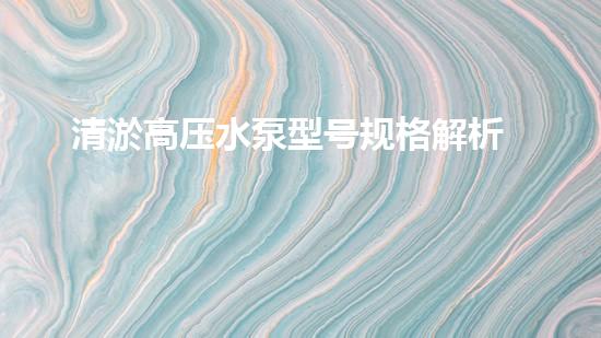 清淤高压水泵型号规格解析