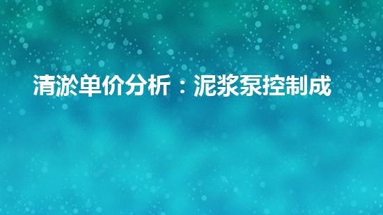 清淤单价分析:泥浆泵控制成本的有效工具