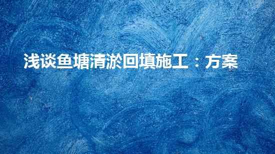 浅谈鱼塘清淤回填施工:方案与实践