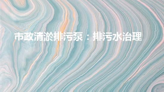 市政清淤排污泵:排污水治理新方式