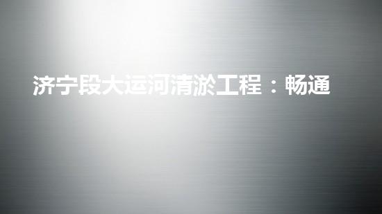 济宁段大运河清淤工程:畅通水道,造福民生