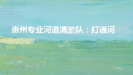 惠州专业河道清淤队:打通河道畅通未来!