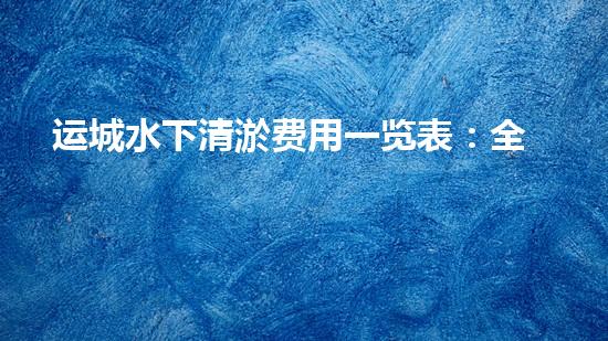 清淤服务的价格因清淤服务类型、清淤深度以及清淤所在地点的不同而有所不同。下面是运城市清淤服务费用的对比表。