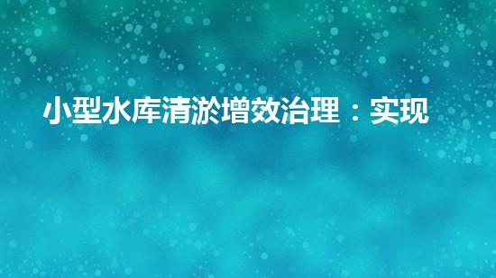 小型水库清淤增效治理:实现淤泥资源化利用