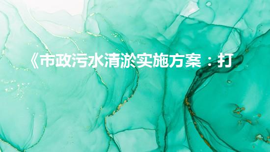 《市政污水清淤实施方案:打造清洁城市环境》