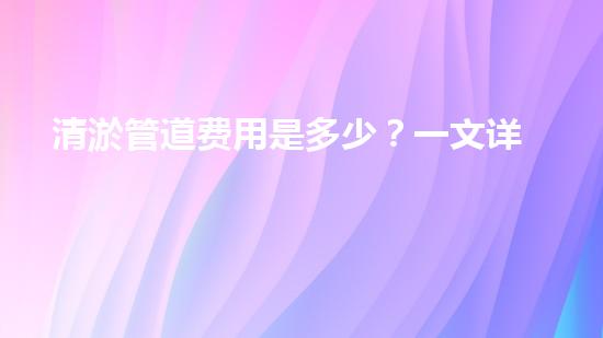 清淤管道费用是多少?一文详解价格构成省钱策略