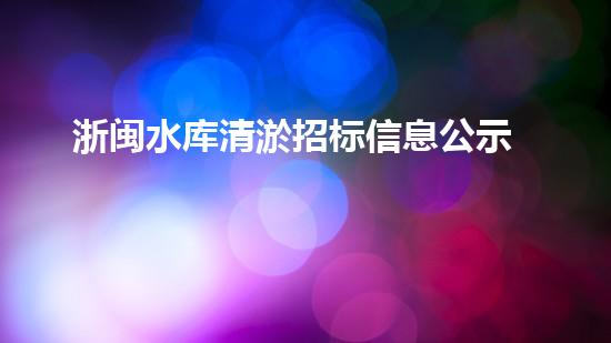浙闽水库清淤招标信息公示