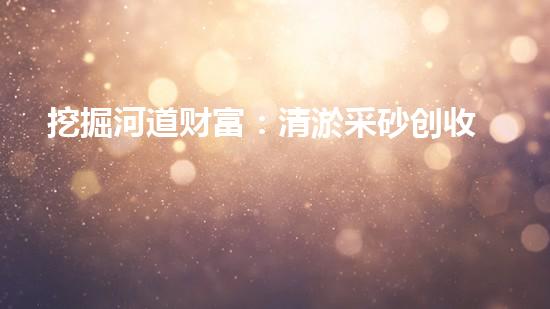 挖掘河道财富:清淤采砂创收秘籍,已经成为地方政府、投资商、企业家等经济发展的重要手段,也是保障水资源的必要方法。本文以清淤采砂为中心,介绍如何挖掘河道财富,为读者提供背景信息。通过分析清淤采砂的特性和优势,为相关行业人员和投资商提供参考。本文从四个方面进行专业分析,包括清淤采砂的基本概念、清淤采砂的技术手段、清淤采砂的商业运作、清淤采砂的环保问题。