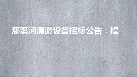 本文主要介绍慈溪河清淤设备招标公告,旨在提高水位,防止洪灾。慈溪河是我国江南地区重要的河流之一,因为长期淤积和堆积,水道的深度明显受到了影响,从而导致了灾害性的洪水,严重威胁了当地居民的生命和财产安全。因此,为了遏制这种不利局面,对慈溪河进行清淤是十分必要的。本文将会从多个方面阐述清淤设备的招标公告,以期引发人们对清淤工作的高度关注。