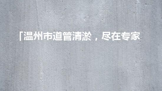 一. 温州市道管清淤的现状与挑战
