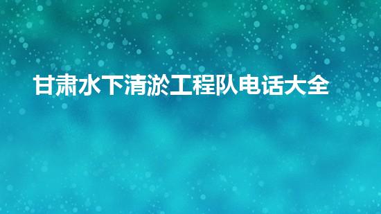 甘肃水下清淤工程队为解决淤塞问题提供全方位的服务,拥有一支专业的水下清淤队伍。本文将介绍甘肃水下清淤工程队电话大全,详情请往下查看。