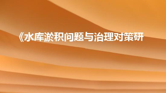 三、水库淤积问题的治理对策