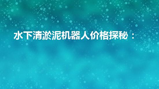 水下清淤泥机器人价格探秘:从成本到价值回归